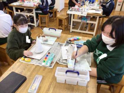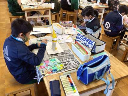 今日は「固まった形から」の作品作りをしました。真っ白だった作品に色をつけることで、素敵な作品ができてきました。