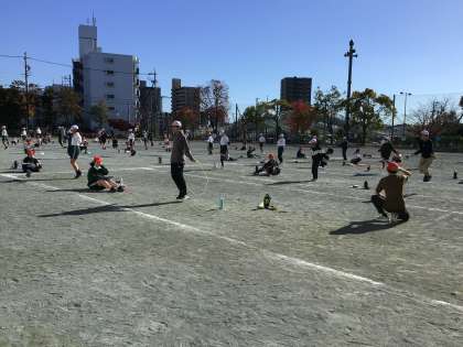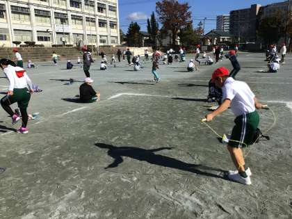 1分間に何回跳べるのか。子どもたちは自分の限界に挑戦しています。