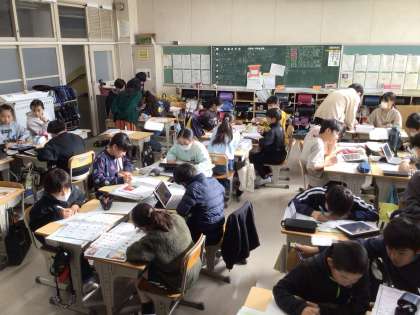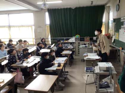 今日も英語の歌からスタートです。新しい単語の発音やスペルなど、丁寧に勉強しています。そのあとは、グループで決めた動物のためにできることの発表に向けて、動物について調べました。例文を元に、英語で発表できるように各グループで相談しています。