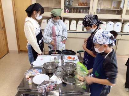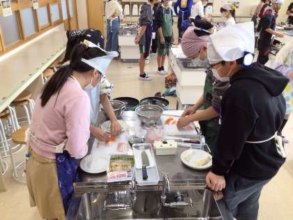 6年 調理実習 公開日 2024/12/06 更新日 2024/12/06 各学年から 茹でる、炒めるなど、5年生の頃から積み上げた技能を全て盛り込んだ調理実習です。家庭では買い出しや調理のリハーサルなど、さまざまなサポートをしていただき、ありがとうございます。 写真では伝わらないですが、いい香りが家庭科室中に広がっています。どの子も彩りや見た目をよく盛り付けできるように、頑張っていました。