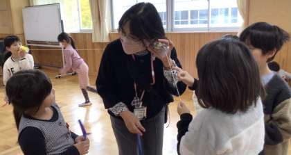 2年 生活 公開日 2024/12/06 更新日 2024/12/06 各学年から うごいたり音が鳴ったりするおもちゃの発表会を行いました。 工夫したこと、難しかったことなどを発表した後、作ったおもちゃで 遊びました。校長先生も一緒に遊んでもらいました。