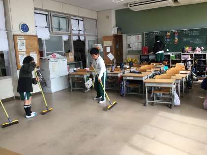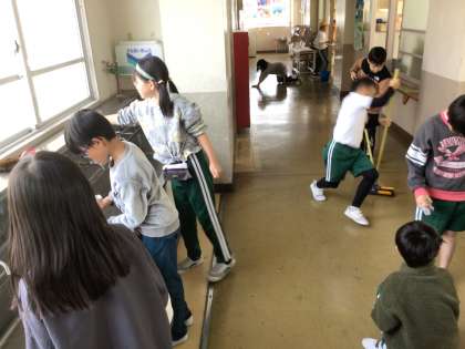 掃除の時間の様子です。隅々まで丁寧に綺麗にしています。