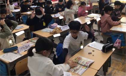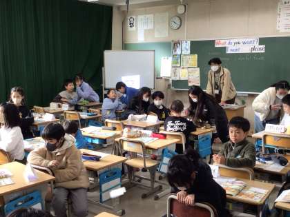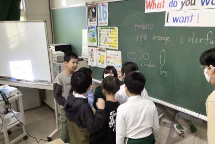 外国語活動の授業では、新しく学んだ英単語に親しむため、ジェスチャーゲームやキーワードゲームなどのアクティビティを通して学習しています。