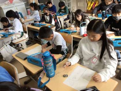 社会科「くらしを守る」の学習のまとめとして、防災や事件事故防止を呼びかけるポスターを作成しています。