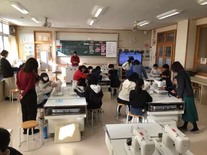 ミシンの使い方を学習しました。今日は、7人のミシンボランティアさんにお越しいただき、丁寧に教えていただきました。