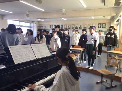 明日の学習発表会へ向けてアルトとソプラノで合唱練習をしています。低音と高音の綺麗なハーモニーにで日に日に上達しています。