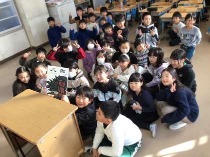 3年 読書タイム 公開日 2024/12/19 更新日 2024/12/19 各学年から 冬休み前の貸出のために本を返したので、今日の読書タイムは読み語り聞きました。国語で学習している「モチモチの木」の作者、斎藤隆介さんの「八郎」を読みました。