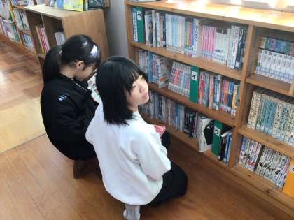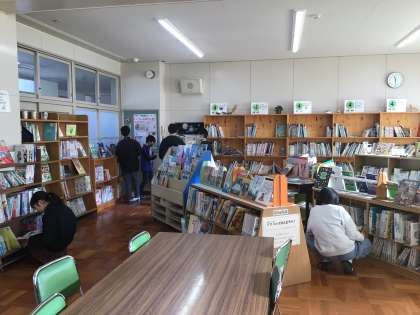 6年生の図書館での様子です。冬休みに向けて本の貸し出しをしています。今回は一人三冊借りることができるので、みんなどれを借りようかと迷っていました。