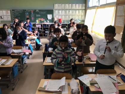 クリスマスコンサートの様子です。みんな楽しそうに斉唱や演奏をしています。