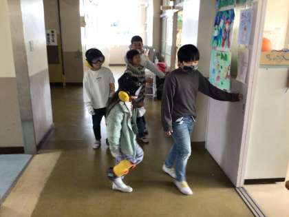 高齢者の方の手足、視覚や聴覚の不自由さを体験しました。体が思うように動かないことに戸惑いながら活動をしていました。
