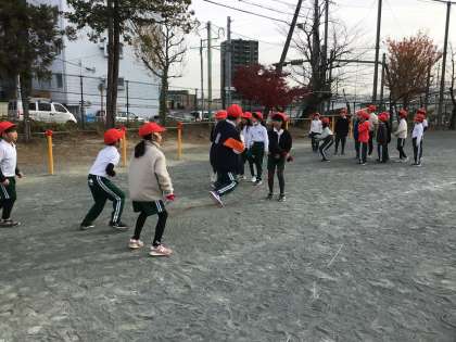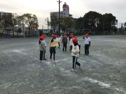 大縄跳びの練習、1分間に100回を目指して頑張っています。