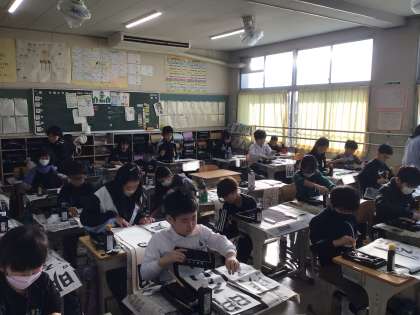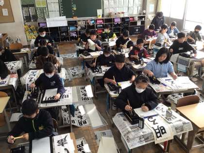 どの子も集中して真剣に取り組んでいます。9日から行われる書き初め展にぜひ足を運んでいただき、子どもたちの作品をご覧になってください。