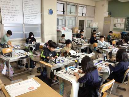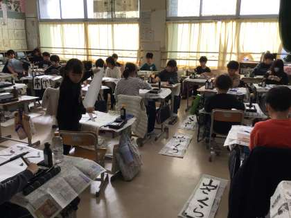 書き初め大会の様子です。どの子も一生懸命書きました。