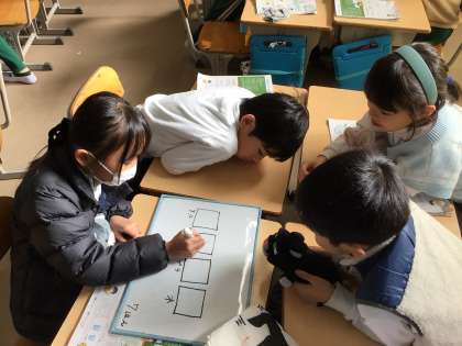 「ものの重さ」という単元で、「同じ体積でも物の種類によって重さが違うか」について予想を立てました。今までの経験をもとにして、「鉄が重いかな?」「プラスチックは木より重いよ」と話し合っていました。