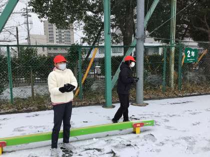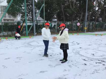 今日は雪が降ったため、雪に触れる機会を作りました。子どもたちは楽しそうにしており、冬を感じることができました。