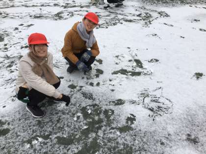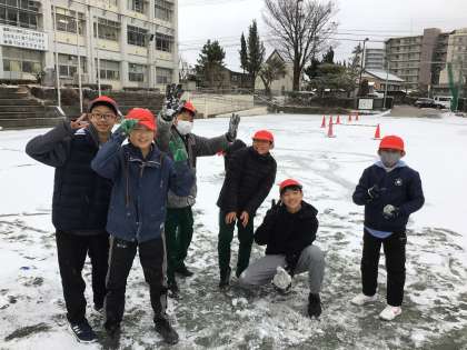 雪が降ったので、体育の時間に雪遊びをしました。久しぶりの雪を楽しみました。