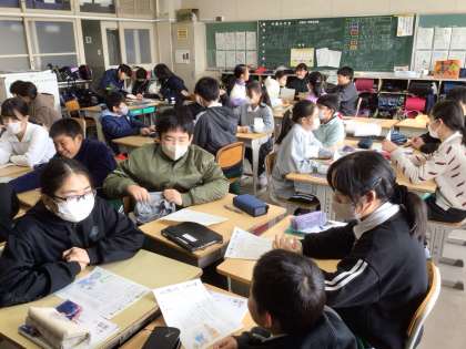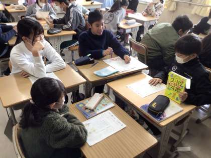 6年 国語 公開日 2025/01/10 更新日 2025/01/10 各学年から 「心に残った、この一文」の単元で、冬休みに借りた本の心に残った一文を紹介し、本を読んで考えたことなどを話し合いました。