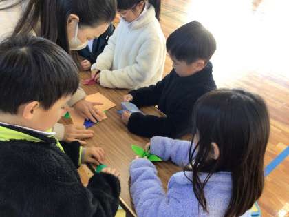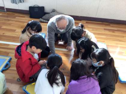 本日、昔あそびの会を行いました。こま回しにけん玉、おはじき、お手玉、あやとりなど、たくさんの遊びを体験しました。初めての体験もあり、子どもたちはとても楽しそうに活動していました。地域の方に多数ご来校いただき、ありがとうございました。