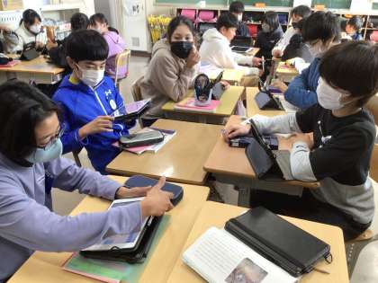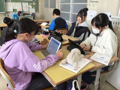 今日は国語科[宇宙への思い]の授業を行いました。3つの文章から、宇宙や地球の未来について自分で考えたことを話し合っています。宇宙から見た地球は素晴らしいこと、今ある生命が尊いことなど感じたことを伝え合い、学びを深めています。
