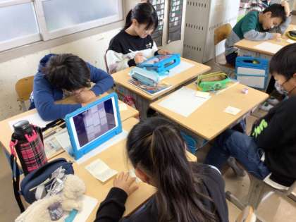「クラスの思い出づくりのために」の学習で、クラスの思い出づくりのためにどんなことができるかを考えました。アイデアを出すために、紙やふせんに書き出したり、タブレットでマインドマップを作ったりと、自分で方法を選んで活動しました。