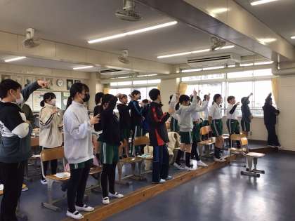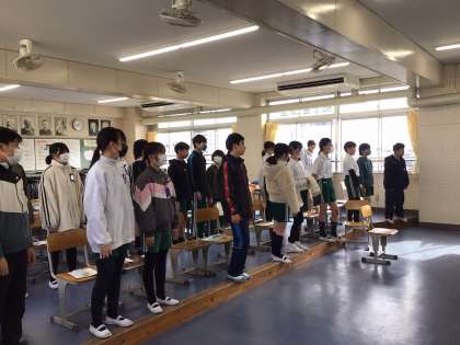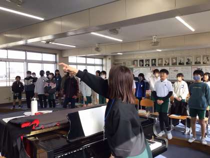 音楽の授業の様子です。しっかりと発声練習をして、卒業式へ向けて歌の練習をしています。これからも少しずつ練習を重ねていきます。アルトとソプラノのパートで合わせて歌う日が楽しみです。