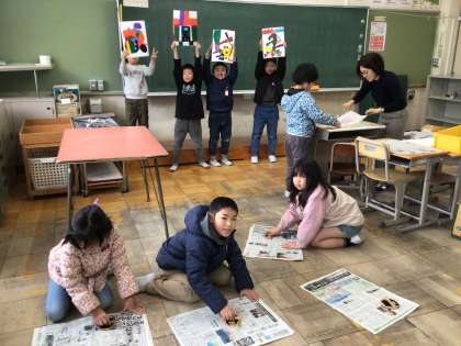 図画工作科の活動の様子です。振り返りや印刷を順番に行っていました。