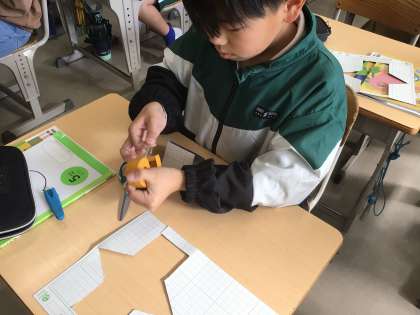 三角柱の展開図を書きました。