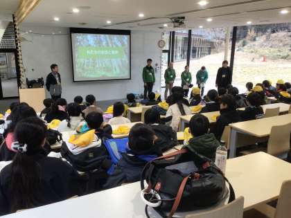 社会科『わたしたちの生活と環境』の学習で豊田市自然観察の森へ行ってきました。自然や環境についての話を聞いたり、森の中を散策したりしました。