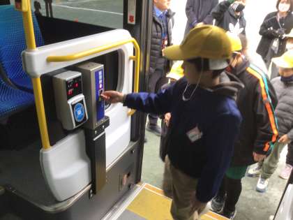 特別支援学級では、豊田スタジアム遠足に向けて、実車を使用したおいでんバスの講習会に参加をしました。