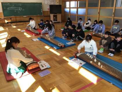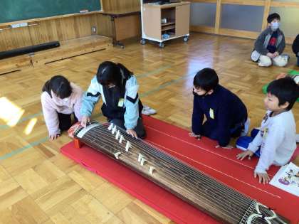角づめをつけて、「さくらさくら」を演奏しました。箏の音色に親しむことができました。