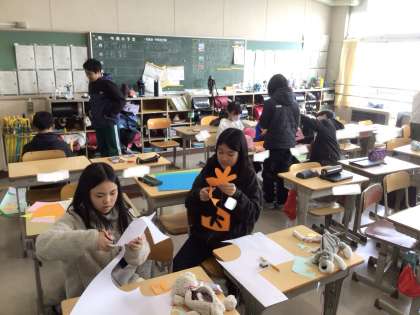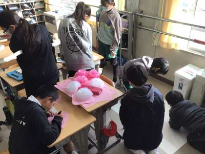 感謝実行委員の活動の様子です。地域の方に感謝する会に向けて、飾りを作成中です。