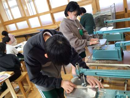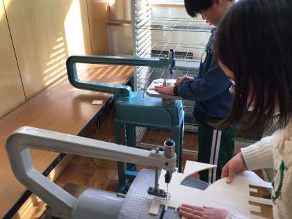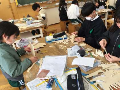 5年 図工2 公開日 2025/02/21 更新日 2025/02/21 各学年から 電動糸のこぎりを使って『糸のこすいすい』の単元に取り組んでいます。板を切ったり組み合わせたりして楽しみながらいろいろな形を作っています。