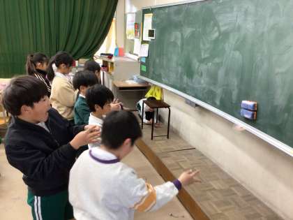 理科の学習で、風の揚力を使ったブーメランを作りました。うまく戻ってくるようにするためには、なかなかコツがいります。