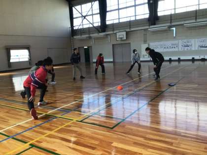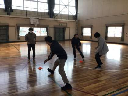体育の授業で行うコーディネーショントレーニングの研修をしました。低学年、中学年、高学年と分かれ、学年にあったトレーニングを教員同士で行いました。体ほぐしの運動など、今後に生かしていきます。