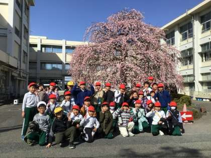 正門前の枝垂れ梅が満開です。花の美しさに、子どもたちも思わず足をとめ、歓声をあげるほどです。