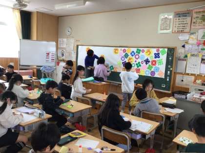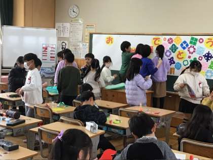校内の環境も卒業式に向けて、お祝いする雰囲気になってきました。今日は、2年生が「おめでとう」の掲示を作成してくれていました。一人一人の切り絵の折り紙が紙いっぱいに貼られていて、お祝いしたい気持ちが伝わってきます。