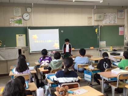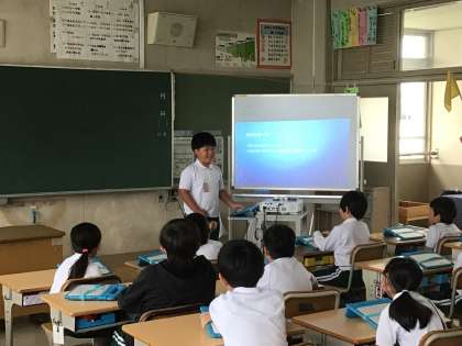 パワーポイントを活用して自己紹介を行っています。相手が見やすいスライドになるよう工夫したり、アニメーションを活用したりして作成することができました。