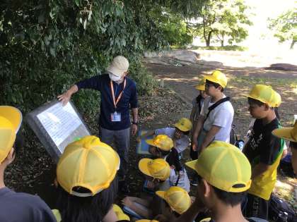 3班 曽根遺跡で古墳を見比べたり竪穴住居の中に入ったりしました。