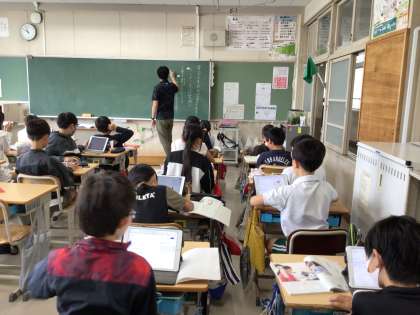 国語科「インターネットは冒険だ」の学習の様子です。説明文の要旨をとらえ、まとめる練習をしています。