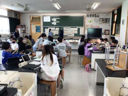 メダカのオスとメスとを見分けるにはどこを見れば良いか、学習をしました。