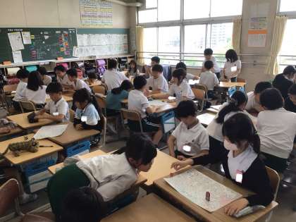 席替えを行いました。その後、新しい生活班の友達と双六トークを行って交流を深めました。