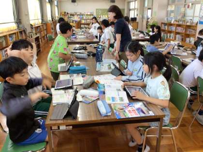 5年 社会 公開日 2025/06/13 更新日 2025/06/13 各学年から 「あたたかい土地のくらし」の学習の様子です。本やインターネットを使って、沖縄県について調べ、タブレットでまとめています。