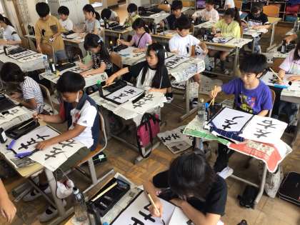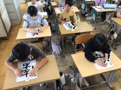 筆順と形に気をつけて、「左右」という字を書きました。次回の清書に向けて自分で振り返ります。