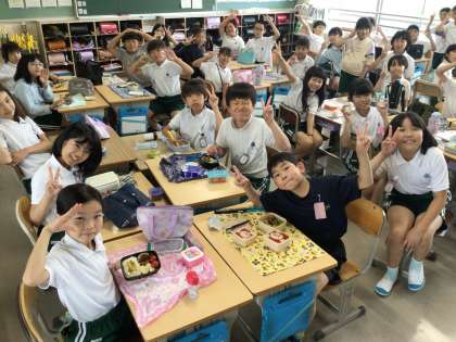 4年 お弁当 公開日 2025/06/25 更新日 2025/06/25 各学年から 1組、2組は校外学習で、豊田市交通安全学習センターへ行きます。今日の昼食はお弁当でした。みんな楽しそうに食べていました。