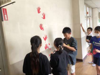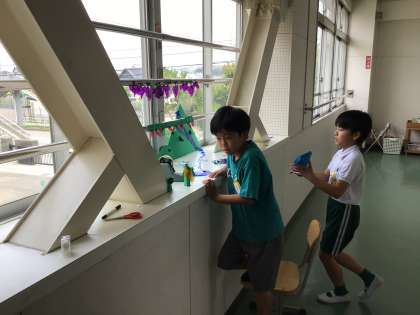 「あんなところがこんなところに」の学習の様子です。場の特徴と素材を組み合わせて作品を作りました。
