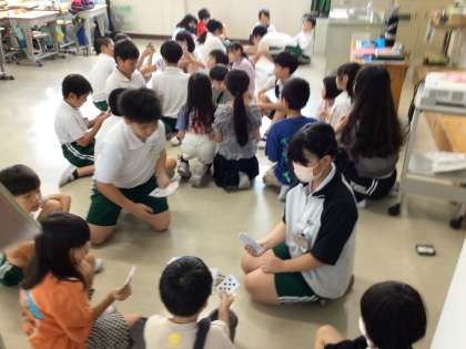 1〜6年生のたてわりメンバーで集まり、6年生が企画した遊びを楽しみ