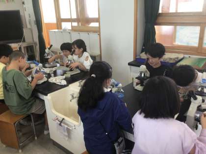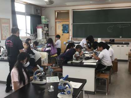 顕微鏡を使って、ミジンコなどの微生物を観察しました。