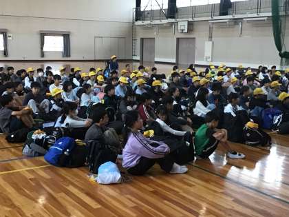 欠席者もなく、5年生全員で野外活動の出発式を行うことができました。スローガンの「一生懸命」を心に留め、仲間と協力して絆を深めてきます。