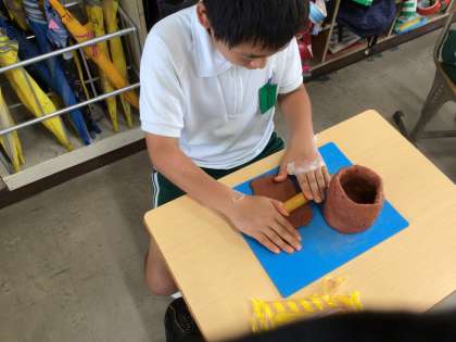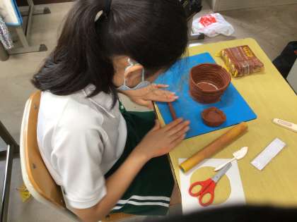 図工では、「使って楽しいやきもの」という単元で、ふだんのくらしで楽しく使えるものをつくっています。