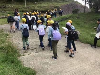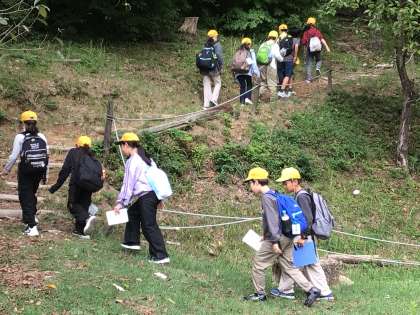 入所式を終え、今からオリエンテーリングに出発です。班の仲間と番号と言葉が書いてあるコントロールポストを探します。